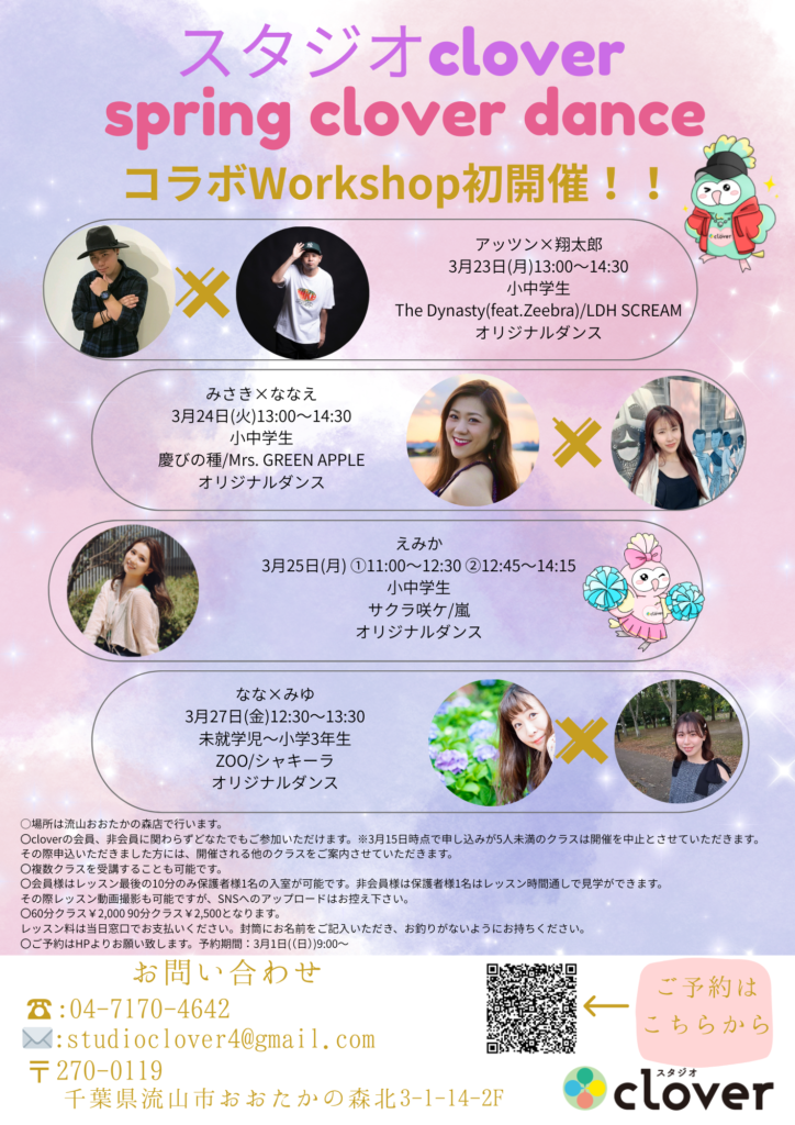 えみか先生には2クラスレッスンをしていただきますのでぜひご予約ください!!(同じ内容となりますのでどちらかの時間帯をご予約ください)